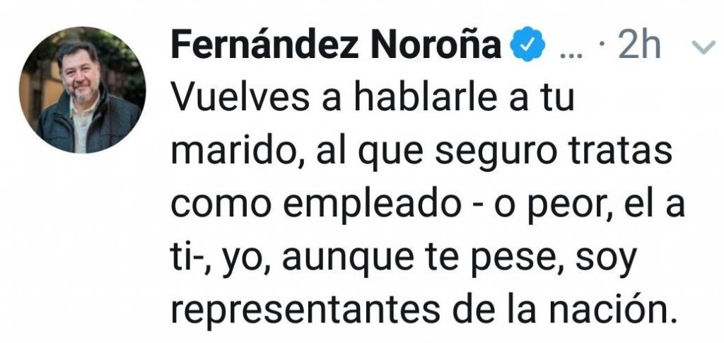 Así le hablaba su papá a su mamá y él extrapola ese comportamiento para con los ciudadanos, sin contar el comentario con el que cierra, el que nunca fue nada sin sus gritos y sus sombrerazos, siente que se ganó la lotería, es evidente.
